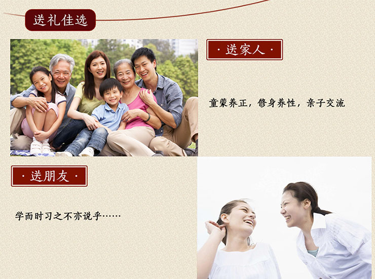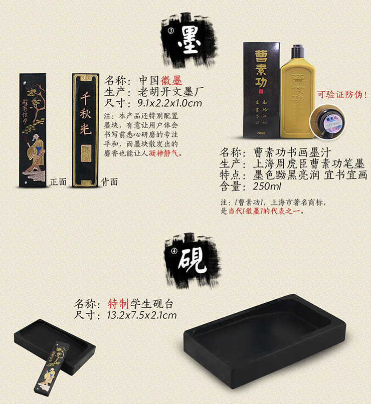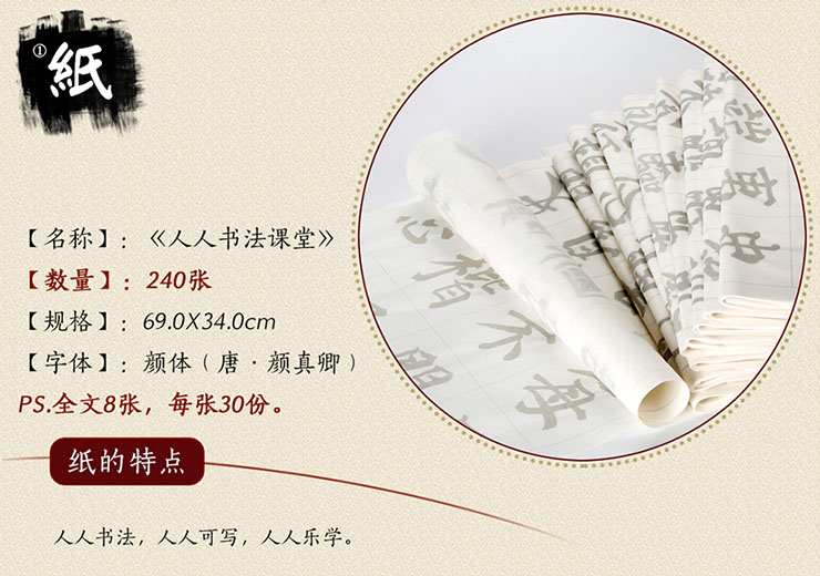 三、不同于传统的“毛笔字帖” 纸质采用有“纸寿千年”之誉的宣纸,采用优质原料,吸墨好,薄而不透,浓淡自然。宣纸上淡淡的灰色毛笔字,字体为颜体,内容为《曾氏家训》,方便习字者临摹描写,比起传统的描红更容易给初学者成就感,促使其一直不停地描写下去,在描灰中体验快乐。