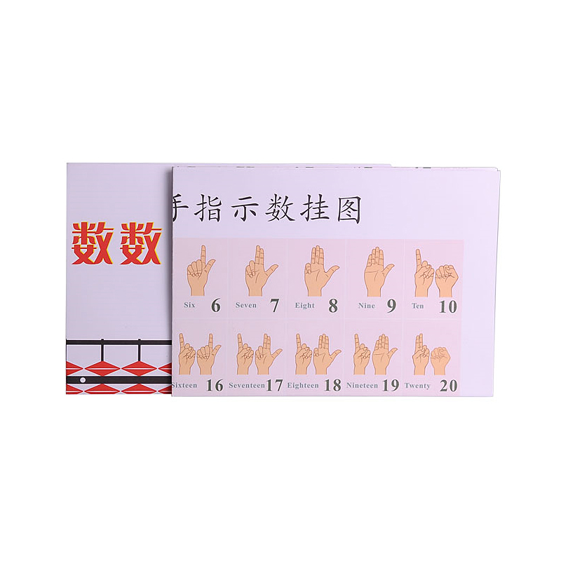 本套挂图包含《快乐数数》及《手指示数挂图》两张,尺寸为54cm * 78cm,四开,四色印刷。